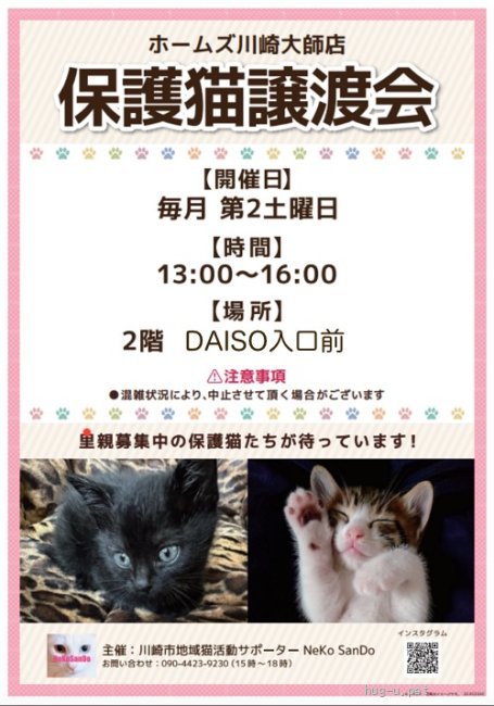 その他備考 里親を希望される方には【里親会】にお越し頂いております。お手数をおかけしますが、①をご確認のうえ、②里親会の予約をお願い致します。※日曜以外は希望日をご連絡ください※