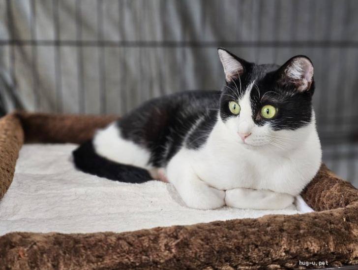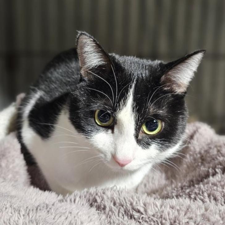 | 性格や特徴 | 仮名:マイマイ 推定生年月日:2023年9月頃 性別:メス 色柄:黒白 短毛 目力強めでキリっとしたハチワレ美人です。 話しかけるとニャーニャー可愛く鳴いてお返事をします。 ちゅ~るが大好きで見せると飛んで来ます。 まだ完全に心を許してくれていないのか触るとスルリと逃げてしまいますが、ちゅ~るを食べている時なら撫でさせてくれます。 隙を見てしれっと触ったりして少しずつお触りの練習中です。 触ろうとしなければ近寄っても逃げず、ゴロンゴロンお腹を出してリラックスして甘える仕草を見せてくれてとても可愛いです。 ひなたぼっことおもちゃで遊ぶのが大好き。 割と活発で身体能力抜群です。 他の猫達とも毛繕いをしてあげたり一緒に追いかけっこをしたり、仲良く暮らしています。 窓の外を眺めるのが大好きなので、外の景色を眺められるお家を希望します。 マイマイちゃんのペースに合わせて気長に優しく接していただけるご家族をお待ちしています。 |