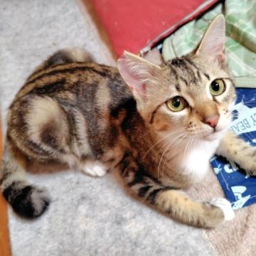 性格や特徴 まだまだ子猫なので兄弟と一緒に高いところに上ったり走ったりと元気に遊んでいます。