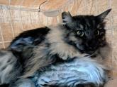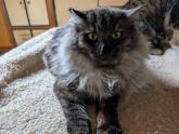 性格や特徴 駅前の商店街の方にご飯をもらい生きていた子です。ロードキルが心配で酷暑の中の長毛がかわいそうで、ご飯をあげていた方の了承をいただき夏から捕獲に取り組みやっとお正月に保護できました。臆病ですが少しづつ抱っこまでできるようになりました。我が家の先住に威嚇されても逃げ出す大人しい子、見た目はゴージャスですが性格は地味男子です。