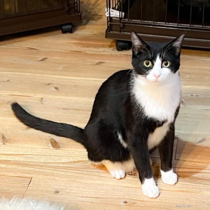 | 性格や特徴 | とっても甘えん坊のメイビーくん。 元々少し怖がりさんで、後ろに引くところがある黒白猫さんらしく、メイビーくんも最初は後ろに隠れておりましたが、今ではすっかり慣れてきて甘えん坊さんに。 静かな子で、バタバタ走り回るような事もないので、飼育もとてもしやすいと思います。 お見合いも可能です。 詳細はお問い合わせください。 |