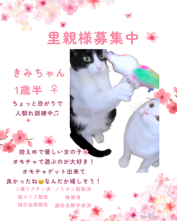 性格や特徴 穏やかでのんびり過ごしている控えめな女の子☺️おもちゃで遊ぶのは大好きだけど、控えめなせいか他の子にオモチャを取られてしまうことも😭シェルターではタップリと甘えさせてあげられていません😭よろしくお願いいたします🙌✨