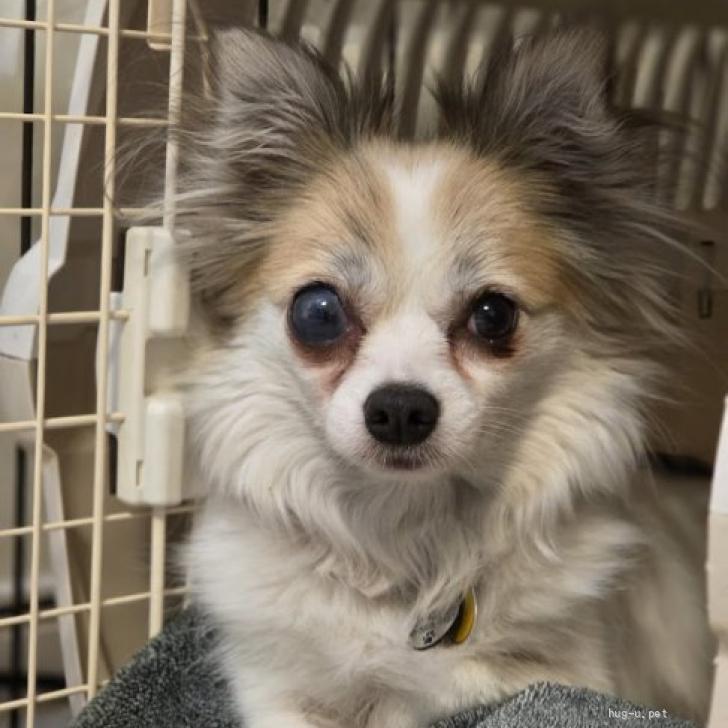 ロングコートチワワ♀白茶黒 推定3~5歳 4.5キロ(やや太り気味)