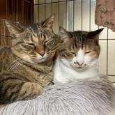 年齢もあるため先住猫ちゃんがいる場合は慣れるまでお時間を頂くと思いますが、様々な年齢のいる猫部屋では他の猫が近くに来すぎると威嚇はしますが手を出したり喧嘩などすることもなく、他の猫のことよりも人の傍にいることを本猫達は好んでいるようです。