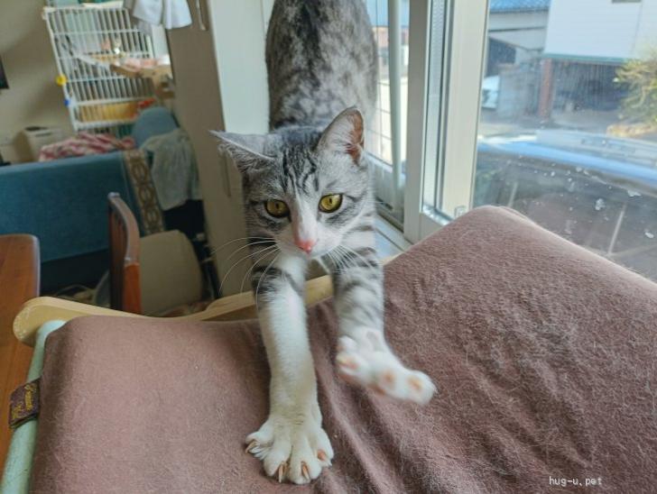 高いところを見れば登ってみたくなり、狭いところがあれば入ってみたくなる、とても好奇心旺盛で天真爛漫、猫の魅力をぎゅっとしたような子です♪