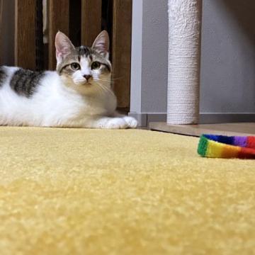 まだ怖がりさんなところもありますが、撫でられるのは好きで撫でてあげるとゴロゴロ言ってくれます。