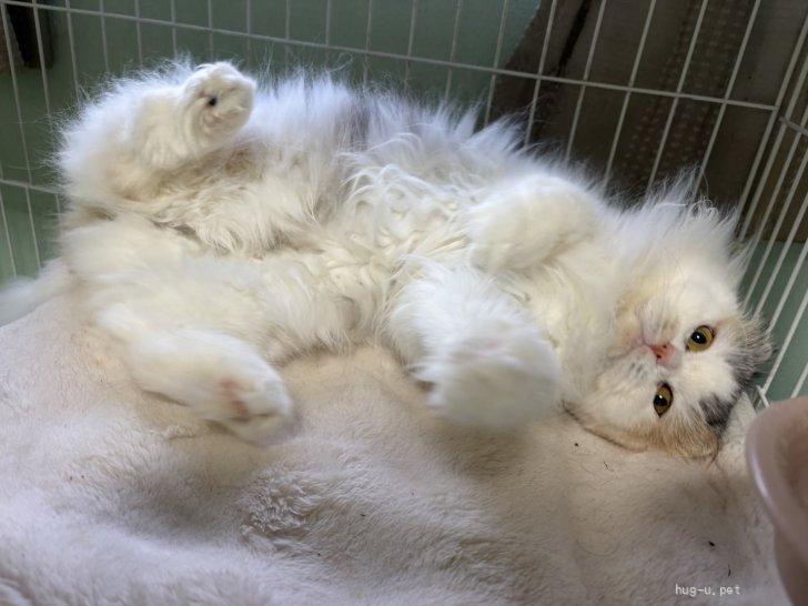 性格:とっても大きな身体にふあふあした毛並み、性格も人懐っこい子、でも猫は苦手、一緒に保護した子は問題ないのですが、他の子が居ると隠れてしまう。