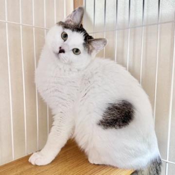 ◯パッチリお目目の白キジ、目の上でハチワレ、鼻にハートの模様が入ってます