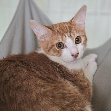 ー緒に保護している猫達と追いかけっこや取っ組み 合いをして若猫らしく遊んでいますが、基本的Iこはあまり派手なことや無茶なことはしない大人しいタイプです。