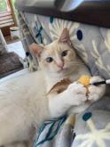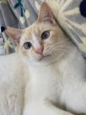 猫より人が好き。とても甘えん坊です。抱っこ大好き。お留守番できます。先住猫がいても大丈夫ですが、ブラン一匹での飼育の方が良いかもしれません。