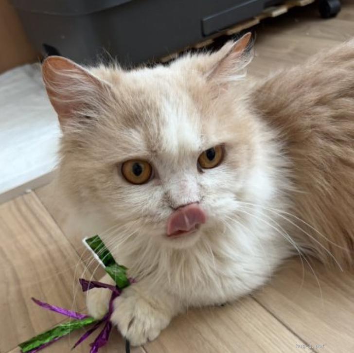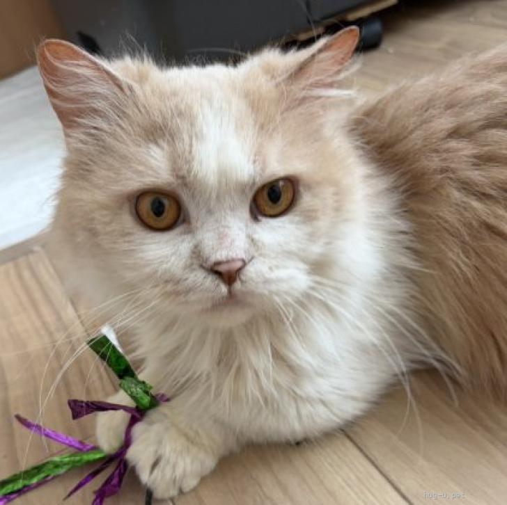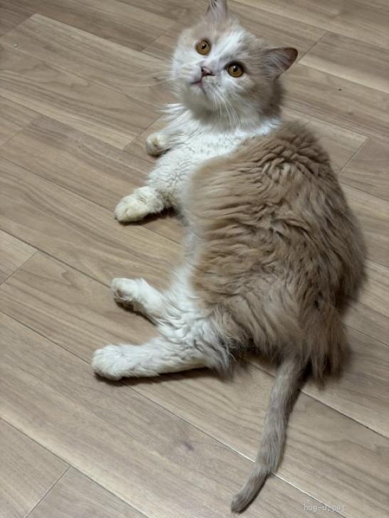 ○推定4歳(2026年4月時点)の、短足・お顔大きめのとても可愛い茶白ハチワレのミヌエットです。ふかふか中長毛の男の子です。