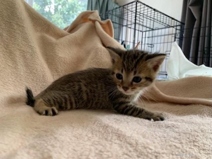 性格や特徴 可愛いキジトラの男の子、おはぎ君です。短いしっぽがチャームポイント。まだ小さいので性格はよくわかりませんが、ミルクから育てているので人懐こいです。元気でわんぱく。兄弟たちとわちゃわちゃ楽しく遊んでいます。