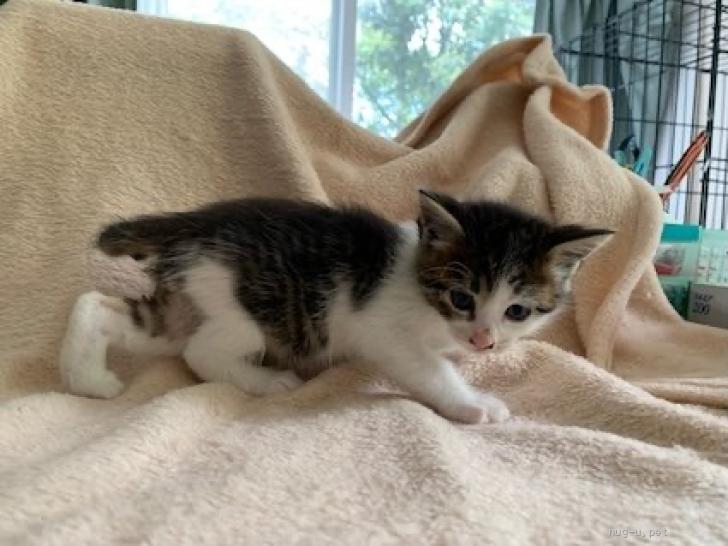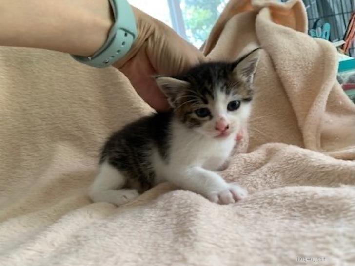 性格や特徴 可愛いキジ白の男の子、ういろう君です。短いしっぽがチャームポイント。まだ小さいので性格はよくわかりませんが、ミルクから育てているので人懐こいです。兄弟の中で一番元気でわんぱく。兄弟たちとわちゃわちゃ楽しく遊んでいます。