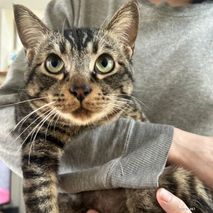 ○生後10ヶ月くらい(2026年4月時点)のキジトラの男の子です。体重は4kg(2026年4月22日時点)です。