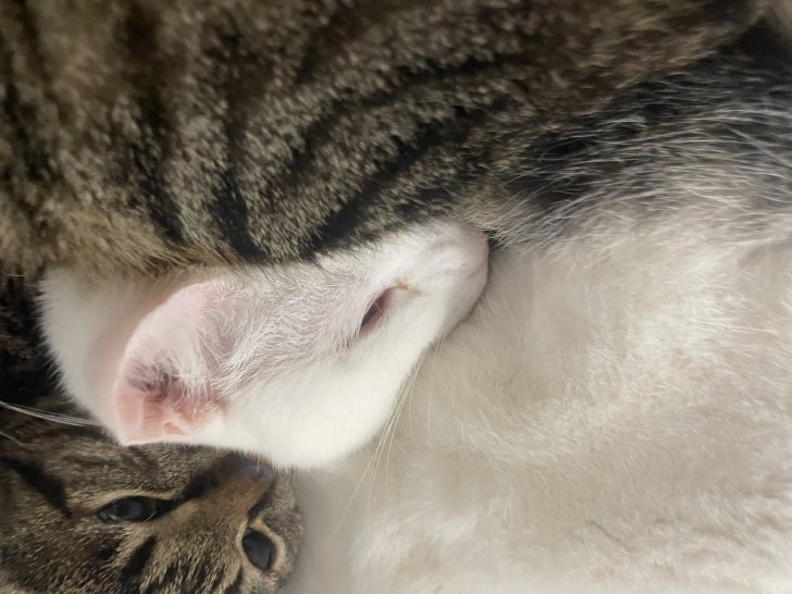 何度かお見合いのために足を運ばせていただきましたが、この施設の猫ちゃんたちはほとんどが人懐っこくて性格の穏やかな子が多くて、本当に愛情を持って育てておられると感じられます。初めは楊貴妃だけのお迎えを想定していましたが、夜になると寂しそうに鳴くことが多かったため同施設のレオナールも共にお迎えさせていただきました。2匹の相性はとても良く、楊貴妃が寂しがることはなくなりました。だんごになって毎日仲良く寝ております。